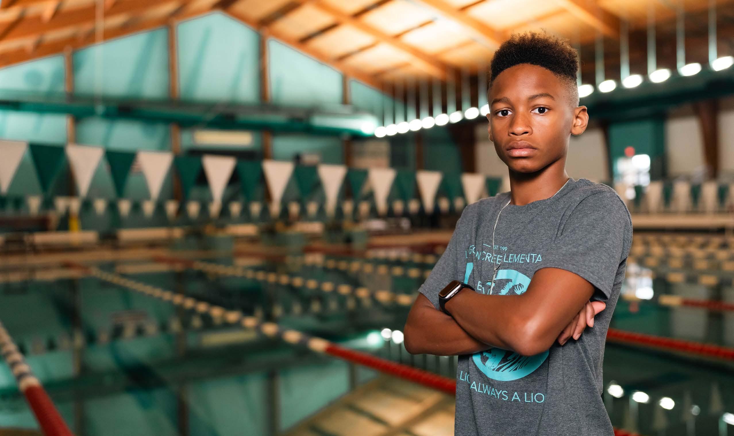 Lexington Creek Elementary student Elijah McCoy discovered his passion for swimming early in life. At 10 months old, he was drawn to the water, and his mother decided he should learn to swim for safety.