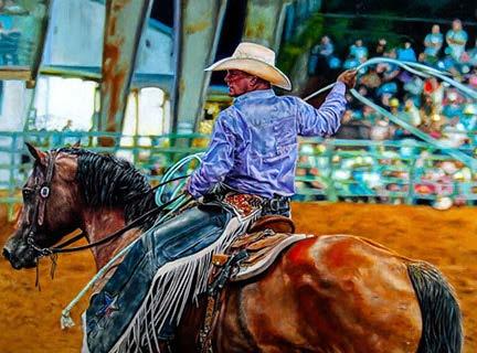 Elkins High School senior Hyewon Joy Park painted a portrait titled “Night at the Arena” that brought in $200,000 at the rodeo’s charity art auction. The work shows a cowboy on horseback in a roping competition. Park was named Reserve Grand Champion, receiving $19,000 of the auction funds.