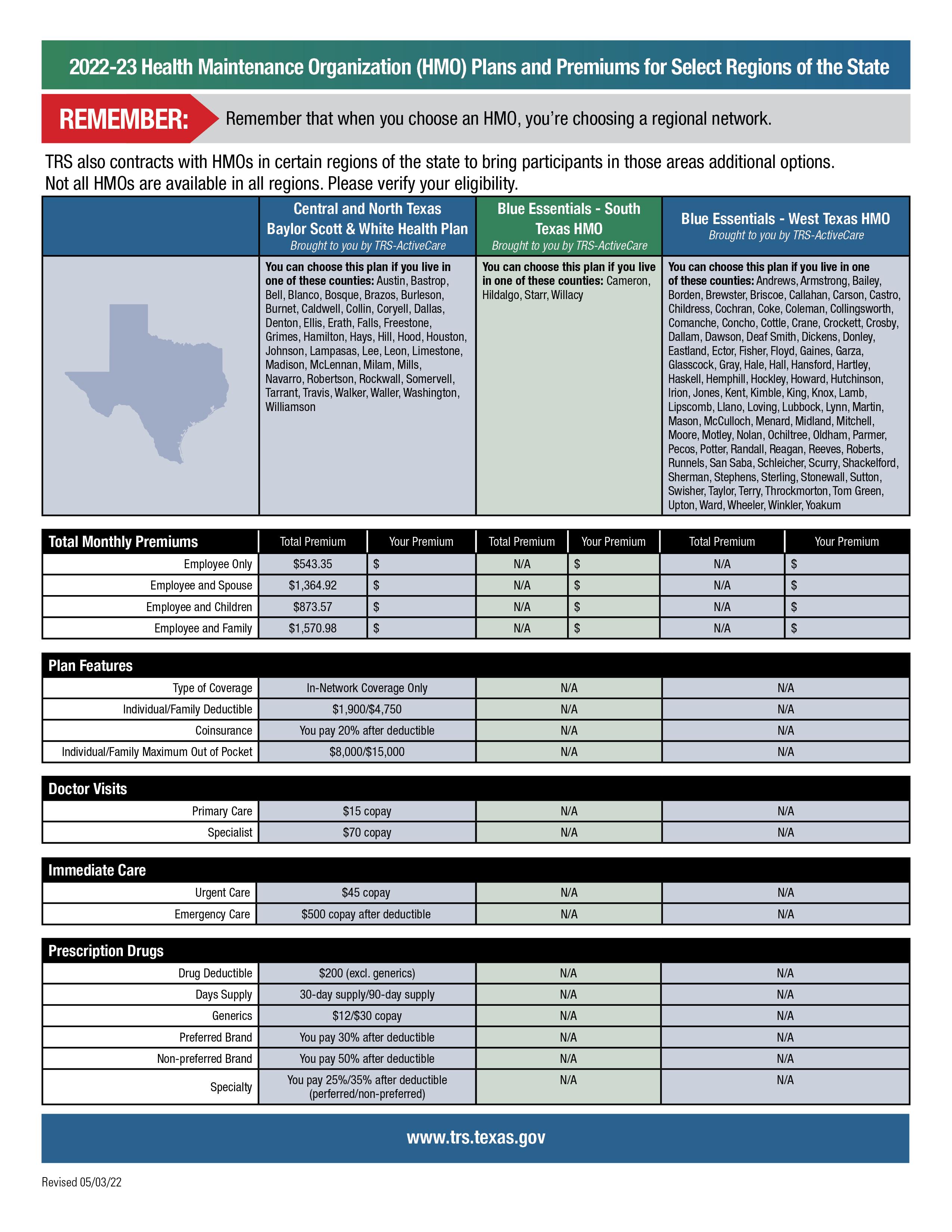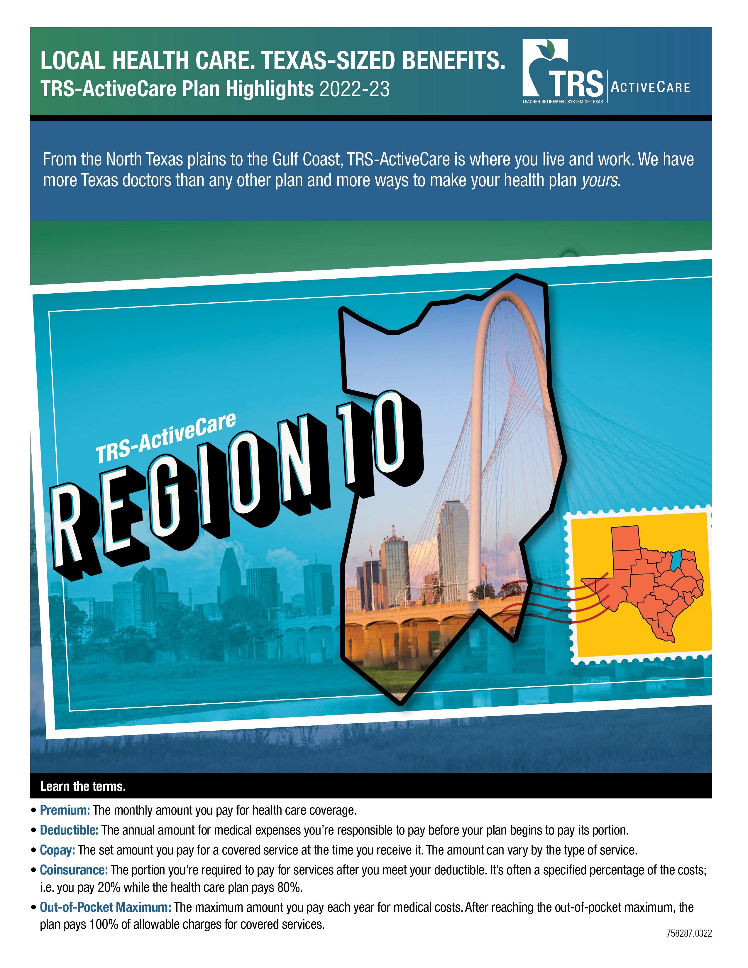 Blue Cross Blue Shield of Texas (866) 355 5999 www.bcbstx.com/trsactivecare