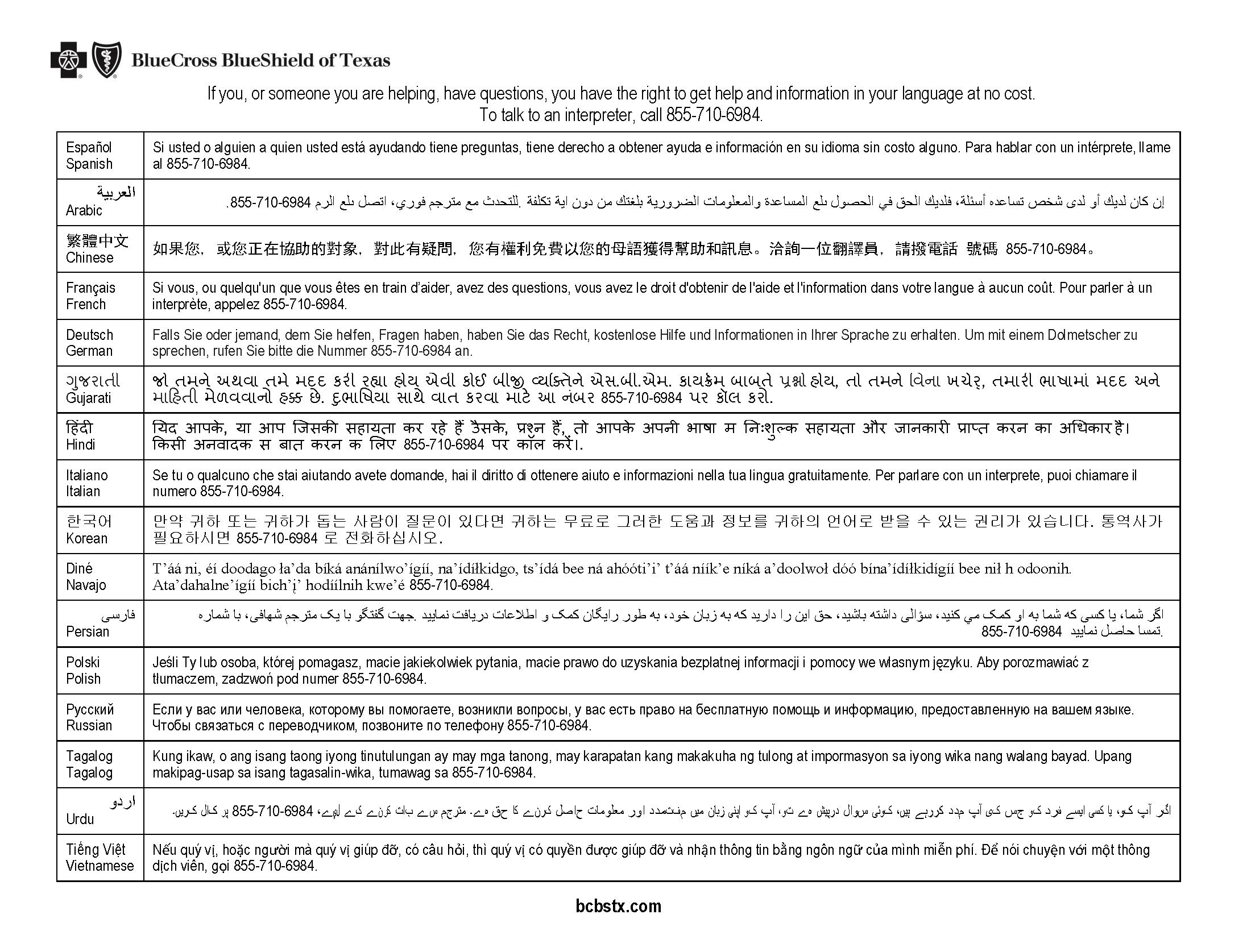Blue Cross Blue Shield of Texas Group #VF029182 (800) 521-2227 www.bcbstx.com
