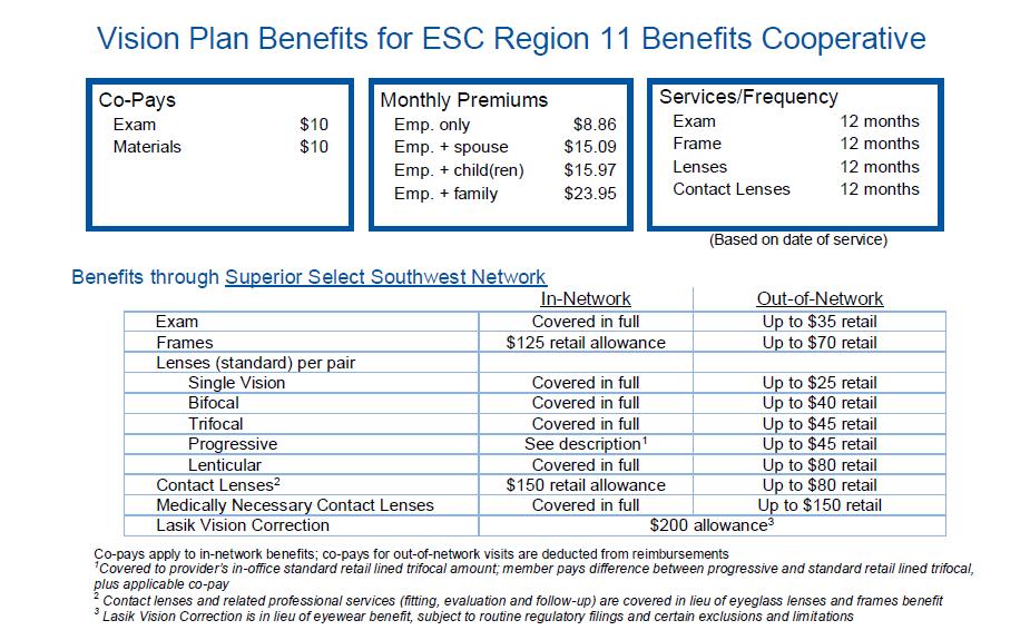 Rate Sheet General Disclaimer: The rate information provided in this guide is subject to change at any time by your employer and/or the plan provider. The rate information included herein, does not guarantee coverage or change or otherwise interpret the terms of the specific plan documentation, available at the ESC Region 11 EBC Benefits Website, which may include additional exclusions and limitations and may require an application for coverage to determine eligibility for the health benefit plan. To the extent the information provided in this summary is inconsistent with the specific plan documentation, the provisions of the specific plan documentation will govern in all cases.