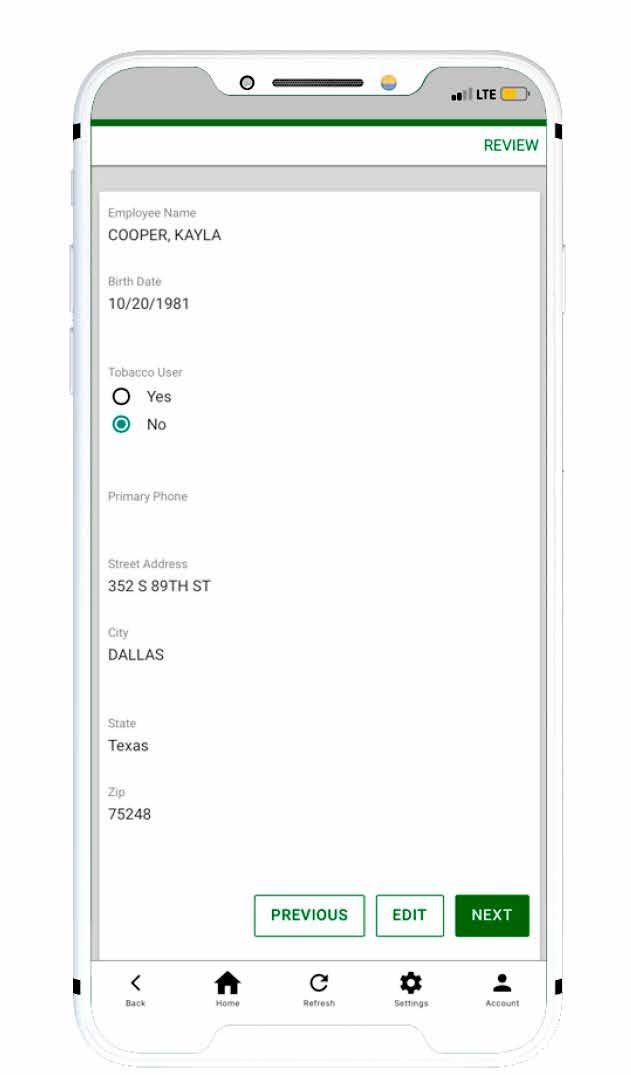 2. Enter your personal information (name, address, phone number, date of birth, and SSN or Employee ID.) Then click Next.