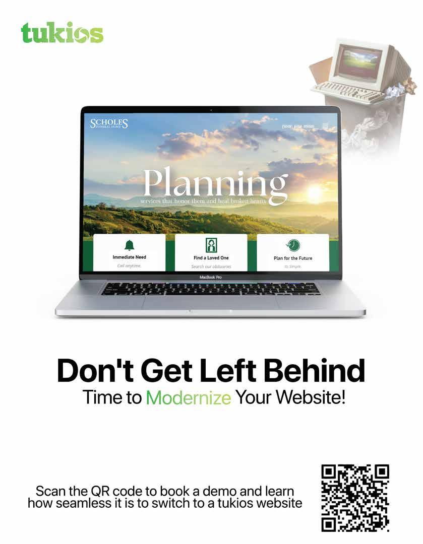 Visit www.FBSMagazine.com for content that is updated frequently and to access articles on a range of funeral industry topics. Radcliffe Media provides its contributing writers latitude in expressing opinions, advice, and solutions. The views expressed are not necessarily those of Radcliffe Media and by no means reflect any guarantees that material facts are accurate or true. Radcliffe Media accepts no liability in respect of the content of any third party material appearing in this magazine. Copyright 2024. All rights reserved. Funeral Business Solutions Magazine content may not be photocopied or reproduced or redistributed without the consent of publisher. For questions regarding magazine or for subscriptions, email info@FBSMagazine.com.