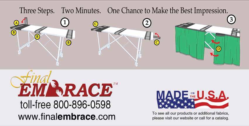 Based in Central Florida, this 23-year old family company makes a full-line of removal and alternative viewing products for the funeral industry. From graveside tables to infant removal containers, Final Embrace creates comforting products that bring humanity to the most difficult undertaking.