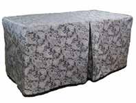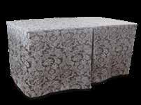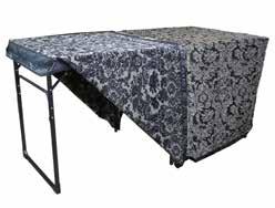 Place the bag on top of the table and the cover unfolds in seconds. Flat pack design keeps fabric from wrinkling and stows quickly.