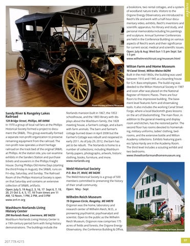 for current social, medical and scientific issues. Open: July & Aug: Wed-Sun 1-5 pm Sept: Sat 1-5 pm www.wilhelmreichtrust.org/museum.html