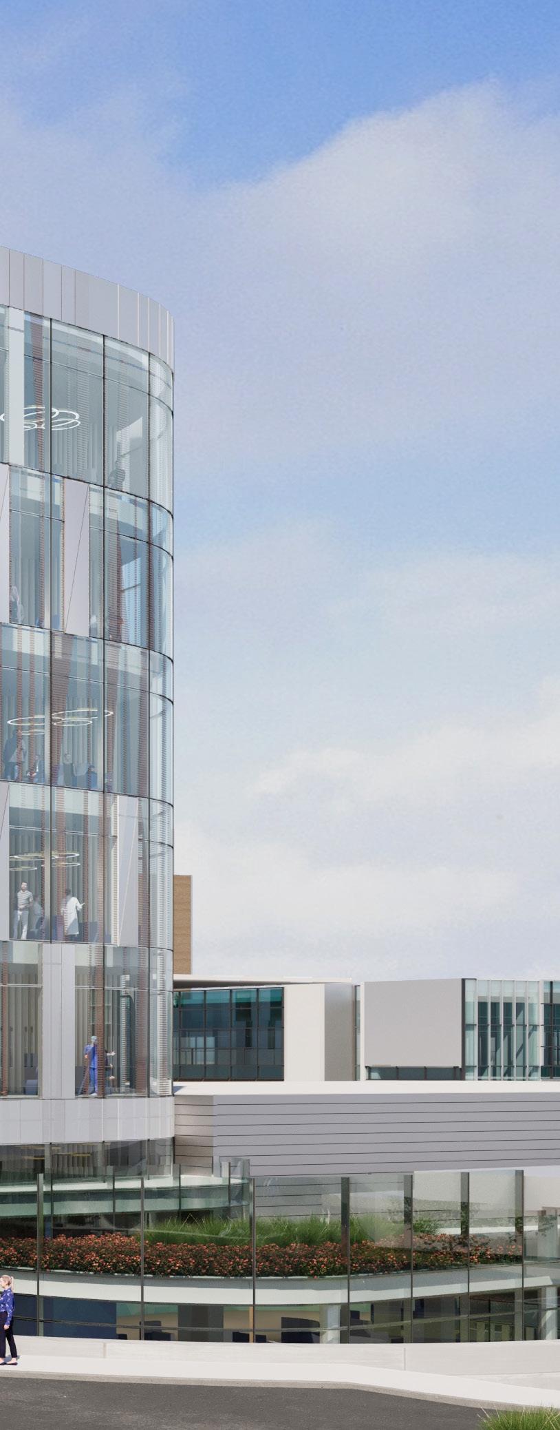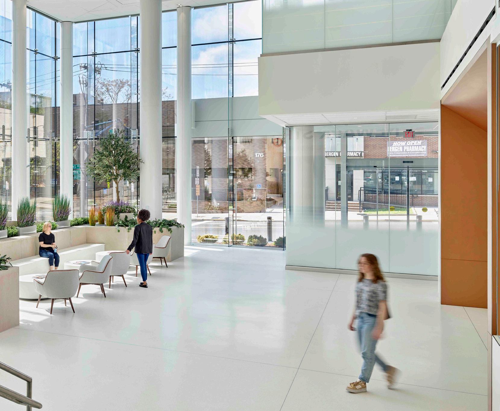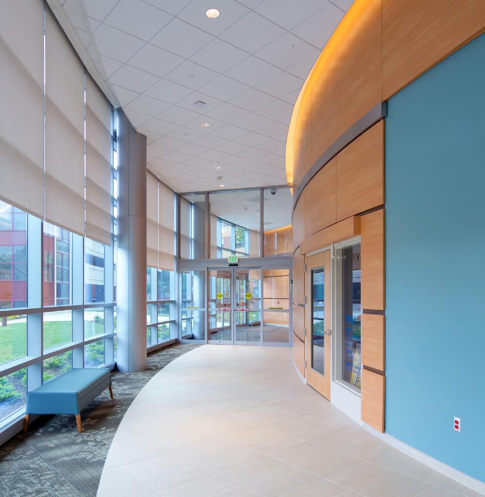 FCA partnered with Saint Barnabas Medical Center to design a stunning fivestory addition, the Cooperman Family Pavilion, seamlessly integrated with the original 1960s structure. The expansion features 114 private rooms, a state-ofthe-art 56-bassinet NICU, advanced diagnostic and imaging services, and a three-story parking garage, all within a light-filled, healing-focused environment that showcases the Medical Center’s commitment to modern, high-quality care.