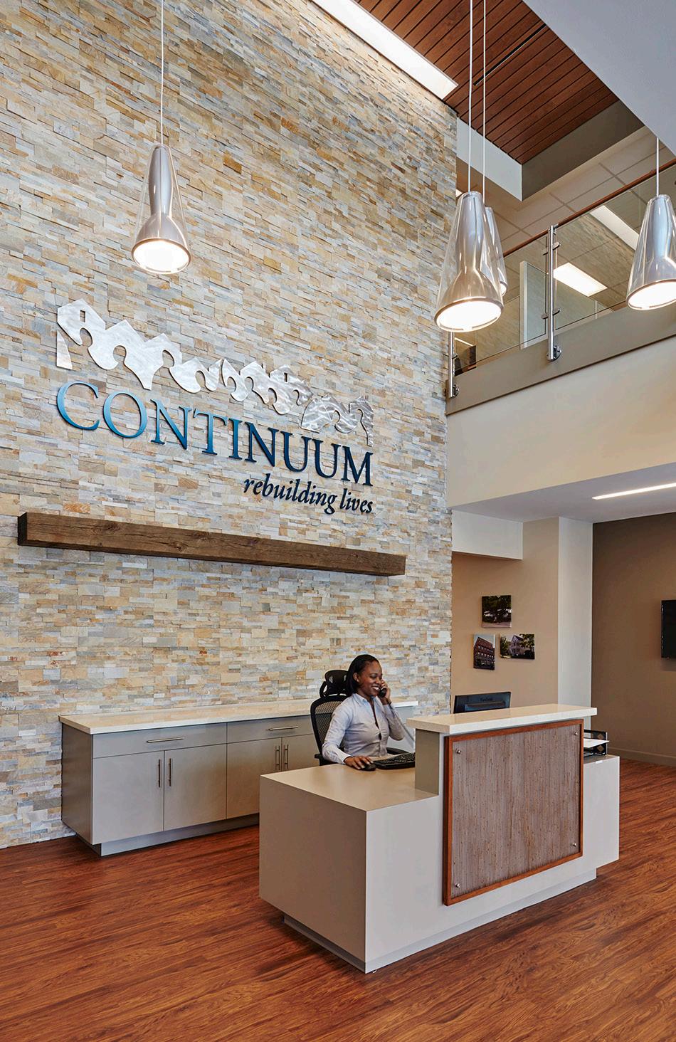 Serving the most underserved population in need of home care, Continuum now has a home for themselves, bringing together over a dozen separate office locations under one roof. To begin the process, the design team gathered and listened to client stories of the nurturing support they were receiving from Continuum. Learning that came from the clients’ experiences inspired the concept of “rebuilding lives,” which became the guiding principle for the design.