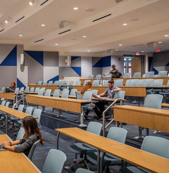 The Communications and Computing & Engineering building is a spacious facility shared by the engineering program and the School of Communications which has become a highlight of tours for visitors and prospective students. Renovations focused on adding collaborative offerings and turning an underutilized gathering area into a prime meeting place for interdisciplinary teamwork and connectivity, while maximizing available daylight and openness.