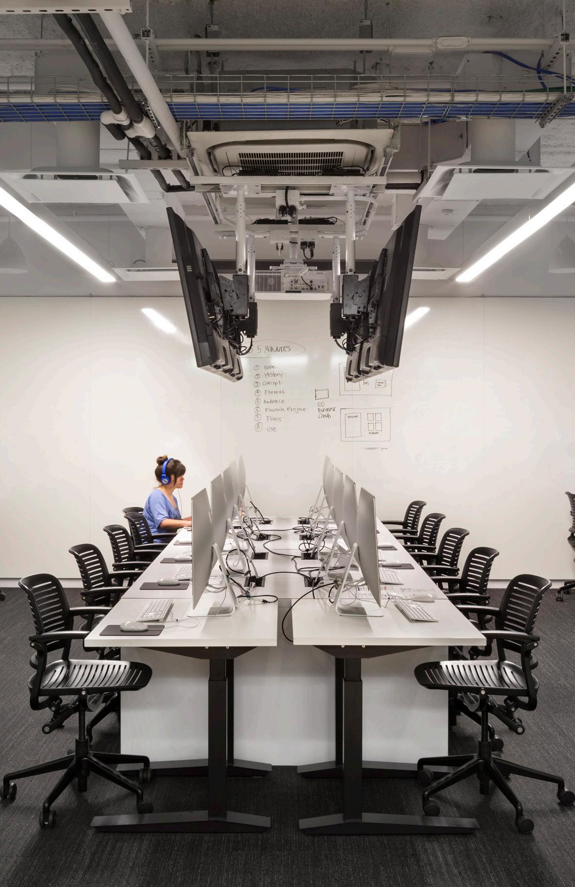 This project represents an adaptive reuse of a Gold Coast mercantile building to create flexible, technologyenabled collaborative spaces that support pooled classroom uses. It condensed fragmented programs into an integrated stateof-the-art digital learning lab, providing a variety of mutually interdependent design, media, and filmrelated teaching and project activities.