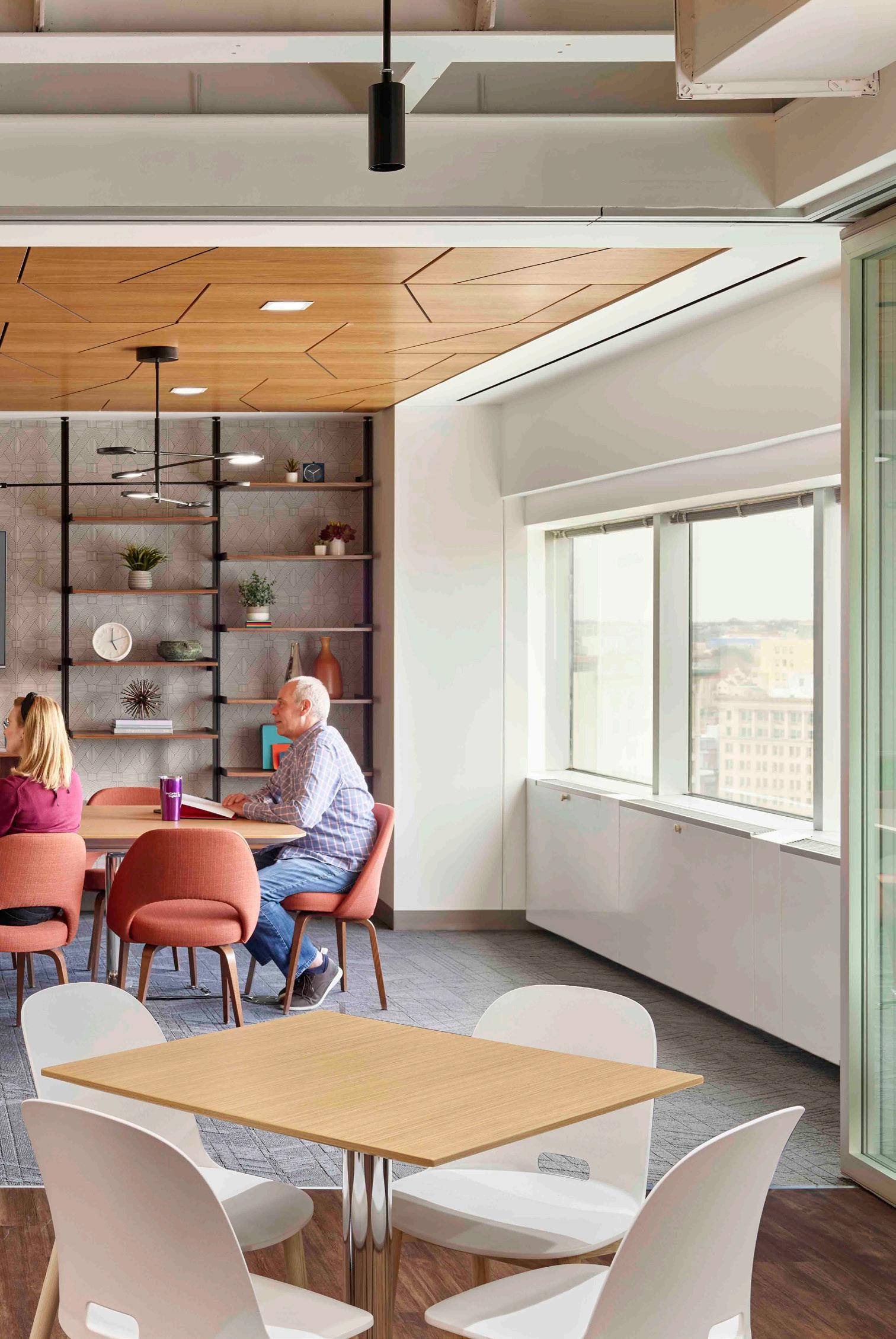 Fox Rothschild’s Minneapolis headquarters underwent a stunning transformation, led by FCA, to align with the firm’s modernized space standards. Downsizing from a sprawling 10 floors to two, the 39,750-square-foot office maximizes efficiency with streamlined attorney workspaces, open collaboration zones, and a grand café designed to spark social interaction. Inspired by Minnesota’s parks and lakes, the design combines industrial and modern elements with natural textures, creating a vibrant and welcoming environment that blends functionality, connectivity, and local charm.