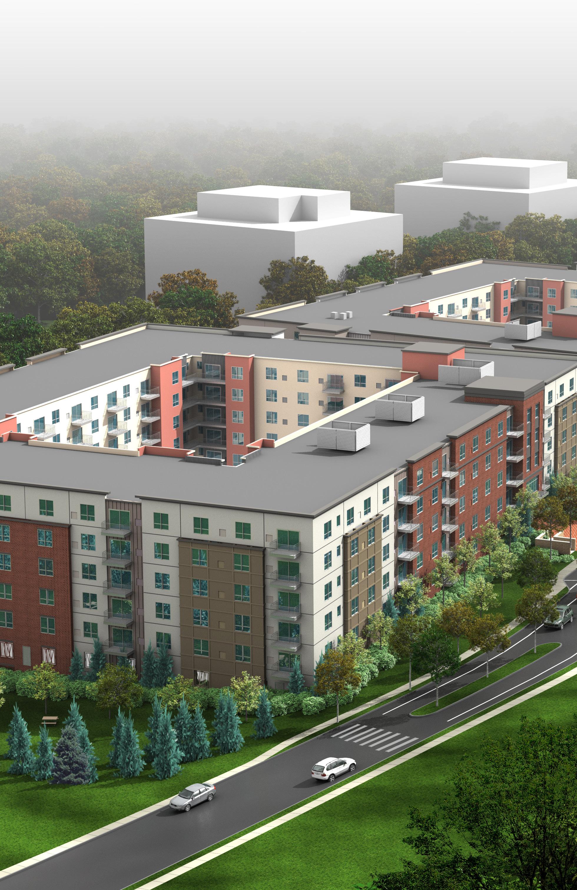 The project includes 160 apartments ranging from studios to two-bedroom units. All units have top-of-the-line finishes, including nine-foot ceilings, granite countertops, stainless steel appliances, custom cabinets, hardwood floors in the living areas, and upgraded bathrooms. On-site amenities include a fitness center, two rooftop courtyards, an attended front desk with concierge services, a clubhouse, on-site storage, bike storage, at-grade and below-grade parking, and a hotelquality lobby. In addition, College & Crown includes approximately 20,000 square feet of retail space on the ground floor designed to accommodate white-tablecloth restaurants, fashion boutiques, and neighborhood uses.