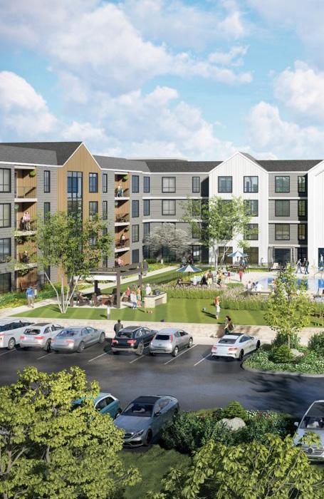 Beyond strengthening the community with needed housing, The Beam also offers comprehensive amenities, encompassing a large parking lot, a fifth-floor outdoor terrace, fitness center, club room with kitchenette, business enclave for remote work, fire-pit lounge and outdoor grilling area, dog park, and walking path.
