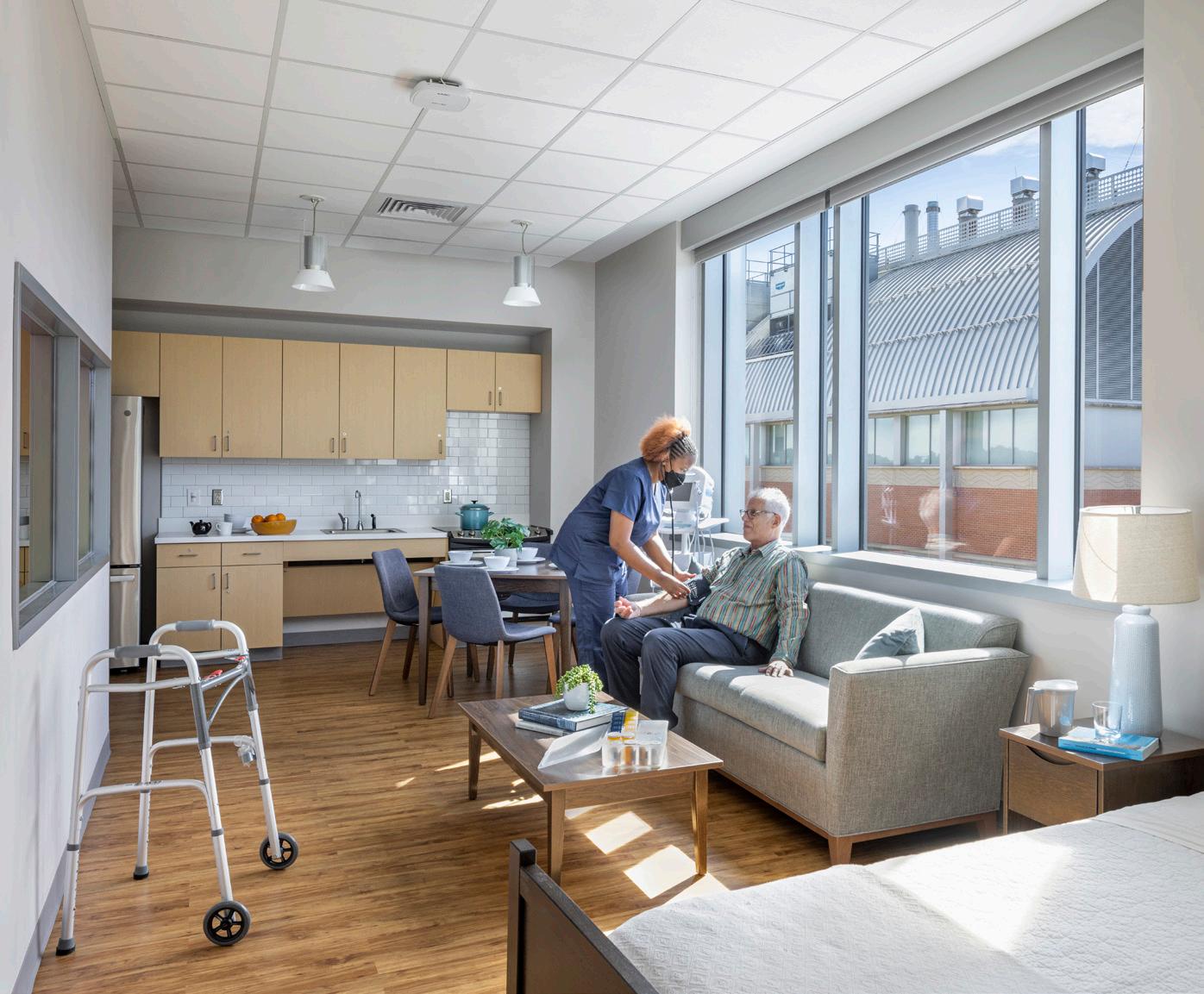As a result of the careful considerations and attention to the campus’ integrity, the design team was able to create a high fidelity standardized patient area, allowing students the opportunity to be as close as they can to real world experience while still being in an educational setting that allows for close observation and critique.