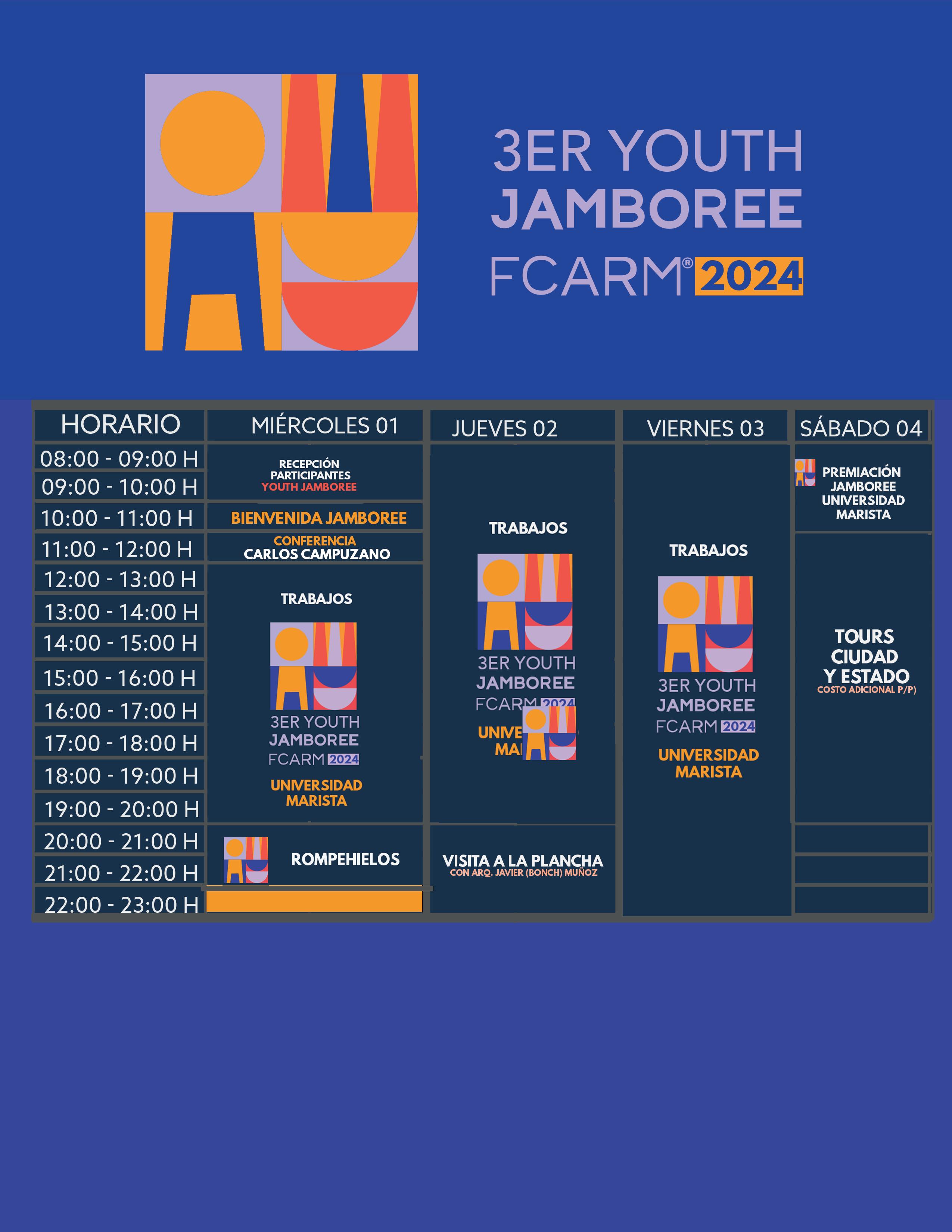 JUEVES 02 VIERNES 03 SÁBADO 04 HORARIO 08:00 - 09:00 H 09:00 - 10:00 H 10:00 - 11:00 H 11:00 - 12:00 H 12:00 - 13:00 H 13:00 - 14:00 H 14:00 - 15:00 H 15:00 - 16:00 H 16:00 - 17:00 H 17:00 - 18:00 H 18:00 - 19:00 H 19:00 - 20:00 H 20:00 - 21:00 H 21:00 - 22:00 H 22:00 - 23:00 H PROGRAMA PRELIMINAR ASAMBLEÍSTA 115 MOVILIDAD Y ARQUITECTURA “LAS CIUDADES DEL MAÑANA” 1-5 MAYO, MÉRIDA YUCATÁN MIÉRCOLES 01 SEDE ASAMBLEA CENTRO DE CONVENCIONES SIGLO XXI Calle 60 Nte 299, Zona Industrial, Revolucion, 97118 Mérida, Yuc. Calle 5 B No. 290 A x 20 A y 60, Col Revolución. México, C. 60, 97115 Mérida, Yuc. HOTEL SEDE FIESTA INN MÉRIDA RECEPCIÓN PARTICIPANTES YOUTH JAMBOREE INAUGURACIÓN YOUTH JAMBOREE UNIVERSIDAD MARISTA TRABAJOS UNIVERSIDAD MARISTA 2024 3ER YOUTH PASEO POR LA CIUDAD EN TURIBUS $150.00 P/P ROMPEHIELOS PREMIACIÓN JAMBOREE UNIVERSIDAD MARISTA TOURS CIUDAD Y ESTADO COSTO ADICIONAL P/P) 2024 TRABAJOS UNIVERSIDAD MARISTA JUNTA CEN HOTEL SEDE SEDE: CONVENCIONES COMISIONES SEDE: MUSEO MUNDO MAYA COMIDA REGIONAL CONVENCIONES SIGLO XXI CONFERENCIAS MUSEO MUNDO MAYA RED PLANNERS SOBRE CALIDAD DE VIDA URBANA Y GOBIERNO DEL ESTADO VISITA A LA PLANCHA CON ARQ. JAVIER (BONCH) MUÑOZ 115 MOVILIDAD Y ARQUITECTURA “LAS CIUDADES DEL MAÑANA” 3ER YOUTH 2024 UNIVERSIDAD MARISTA 3ER YOUTH SEDE: CONVENCIONES SIGLO XXI 115 MOVILIDAD Y ARQUITECTURA “LAS CIUDADES DEL MAÑANA” MOVILIDAD Y ARQUITECTURA “LAS CIUDADES DEL MAÑANA” COMIDA LIBRE NO INCLUIDO EN EL CARNET CONFERENCIAS CENA GALA QUINTA MONTES MOLINA CONFERENCIA RAFEL MONEO MIQUEL LACASTA ARCHIKUBIK VISITA AL PARQUE LA PLANCHA ARQ. JAVIER (BONCH) MUÑOZ ROMPEHIELOS CENA GALA QUINTA MONTES MOLINA EVALUACIÓN YOUTH JAMBOREE PREMIACIÓN YOUTH JAMBOREE COMIDA REGIONAL SIGLO XXI SOLANO BENITEZ COMIDA LIBRE CARLOS CAMPUZANO INAUGURACIÓN YOUTH JAMBOREE CONVERSATORIO CON TUTORES YAMBOREE LIBRE MUNDO MAYA UNIVERSIDAD MARISTA UNIVERSIDAD MARISTA HOTEL SEDE ASAMBLEA - FIESTA INN MÉRIDA CENTRO CULTURAL OLIMPO CONFERENCIAS GUILLERMO REDRADO ATP CONFERENCIAS PANEL PANORAMA CON LOS VICEPRESIDENTES REGIONALES HERNÁDEZ RAFAEL 5:00 5:30 6:30 INAUGURACIÓN VISITA AL PARQUE LA PLANCHA ARQ. JAVIER (BONCH) MUÑOZ SOLANO BENITEZ U MARISTA QUINTA ALSINA MASSÓ 17:00 17:30 18:30 INAUGURACIÓN SIGLO XXI FOTOGRAFÍA OFICIAL ACTO PROTOCOLARIO 10:00 - 10:20 10:30 - 11:00 TOUR IZAMAL SALIDA: 10:00 REGRESO: 20:00 $950.00 (COSTO ADICIONAL P/P) CÓDIGO DE VESTIMENTA ASAMBLEA: BUSINESS CASUAL PASEO EN GUAGUA POR LA CIUDAD SALIDA: 18:00 CONVENCIONES SIGLO XXI REGRESO: 20:00 $200.00 (P/P) (HIDRATACIÓN INCLUIDA) ROMPEHIELO ES EN LA QUINTA ALSINA MASSÓ Calle 18 (Av. Rotary Internacional) x 21-A colonia Itzimná
