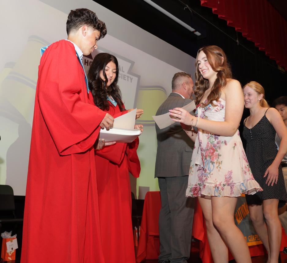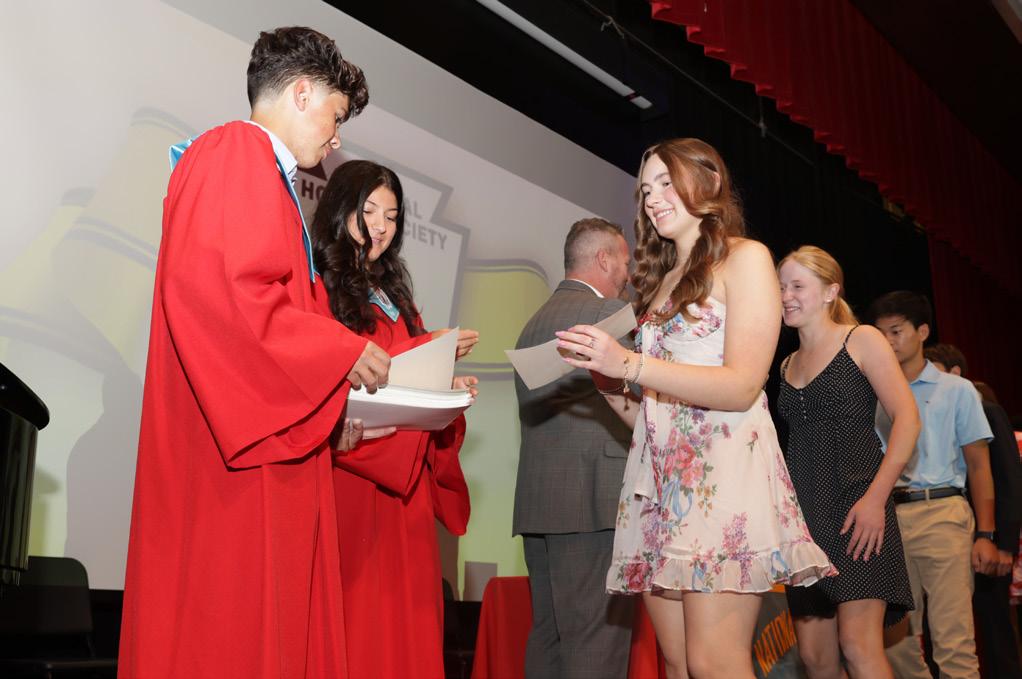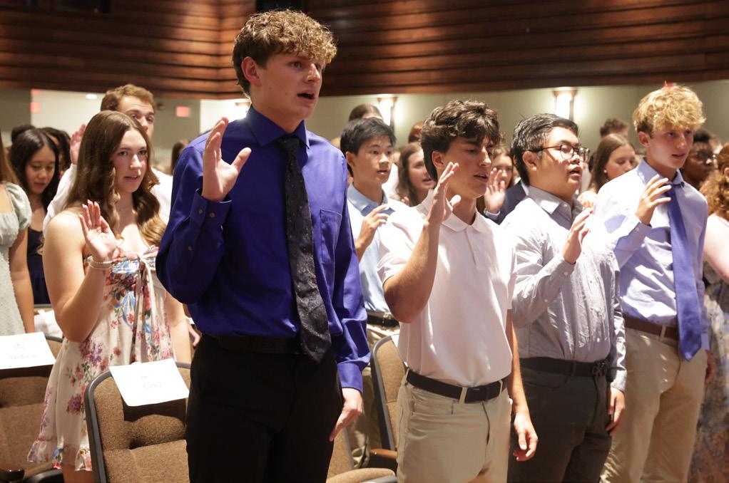 Fox Chapel Area High School held its annual National Honor Society (NHS) induction ceremony in September. Speakers included the four senior NHS officers, President Zehra Ozkaya, Vice President Rodrigo Silva, Secretary Avery Jones, and Treasurer Zinta Jacob. This year, 101 students were inducted into the Fox Chapel Area High School NHS. Those inducted were seniors Quinn Carey, Chase Carney, Aaron Chung, Rocco Didomenico, Abigail Haas, Charles Hill, Warren Kerstetter, Molly Krajkovic, Emma Kuhns, Korra Littwin, and Emilia Sutkowski; and juniors Nisreen Al-Bataineh, Olivia Arca, Ella Bandurski, Jolie Cessna, Zachary Chan, Max Choset, Nathan Chu, Elizabeth Datt, Nadre Digbohou, Evan Donaldson, Holden Driver, Aiden Drucker, Paige Dugan, Ella Ettinger, Collin Fasanella, Kathryn Fasanella, Grant Fenton, Noelle Fouron, Caroline Franklin, Abigail Freyvogel, Brynn Gamblin, Despina Gambotto, Sadie Gass, Remi Goldstein, Ella Golomb, Ainsley Goode, Simon Goode, Juliette Hirshberg, Nolan Horne, Sarah Huang, Lydia Humes, Darshen Jayaratnam, Zhanyu Jiang, Ethan Kabus, William Kelly, Rachel Kim, Tristan Kobylinski, Keita Komatsu, Norah Kovach, Camden Krotine, Joshua Laman, Elizabeth Leland, Antonia Linzoain, Mikhail Lukichev, Victoria Macklin,