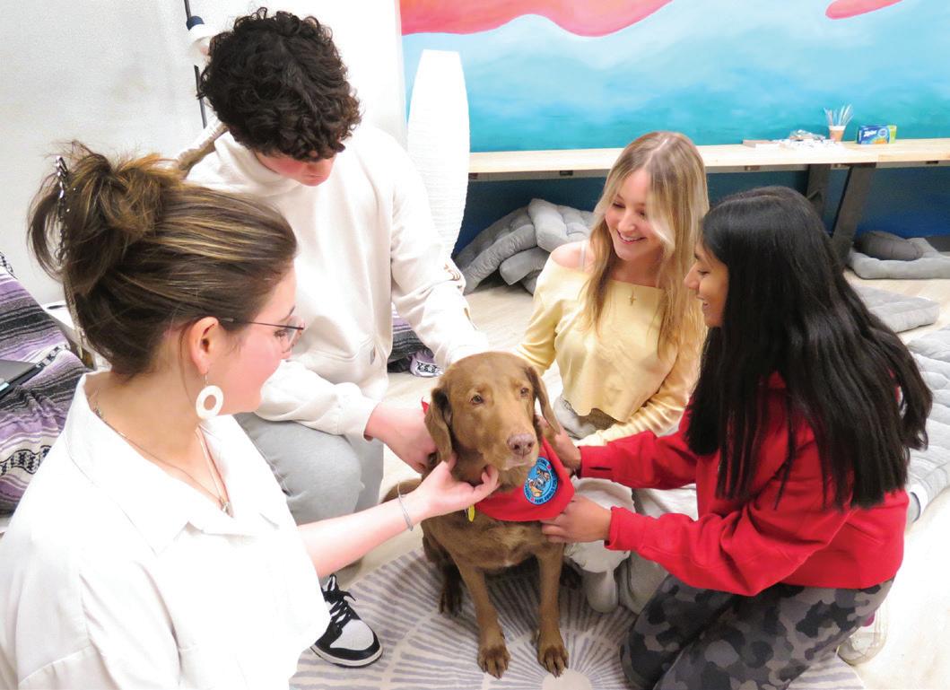 According to Mr. Baxter, some students who had poor attendance now come to school just to see Remy. The pup has also coaxed high-anxiety students out of their cars and into the building. Remy has even served as the “guest speaker” for the school’s psychology club, been the subject of photo shoots with the Advanced Placement (AP) photography students, and is a frequent visitor to the life skills class.