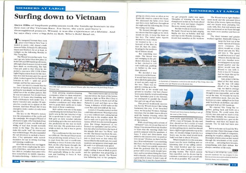 over 12 knots to win. He later said he thought it was impossible, and so did we af the time . No wonder he was in earþ celebration mode. But over the horizon we came, sailing boat for boat with Neil Pryde on Hi-Flyer, our orher principal riyal on CHS handicap. \We entered Nha Trang