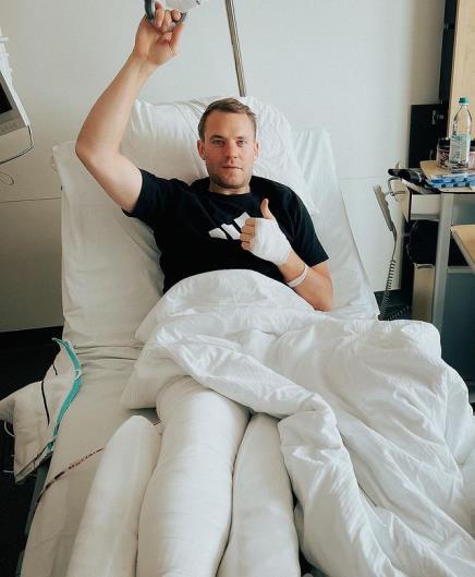El portero dijo en una publicación de Instagram el sábado que se sometió a una cirugía el viernes La publicación muestra una foto de Neuer aparentemente en una cama de hospital con la pierna derecha enyesada y una venda en la mano izquierda