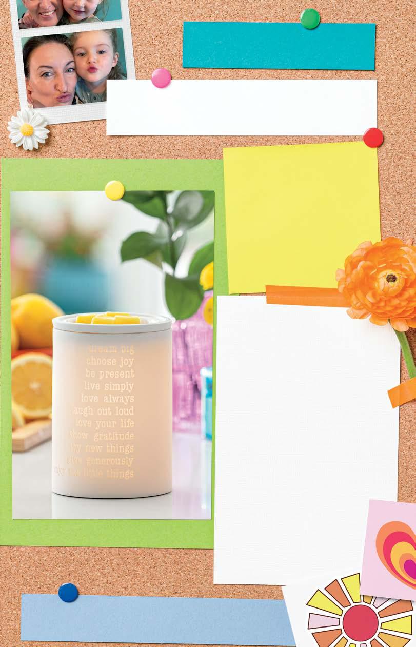 That sense of cheerful expectation is in the air at Scentsy, and we filled the new catalog with bright and refreshing fragrances, warmer designs and so much more to help you embrace it. Don’t miss the Coastal Light Warmer (page 22) and Lake My Day Scentsy Bar (page 25), perfect for bringing the outdoors in.
