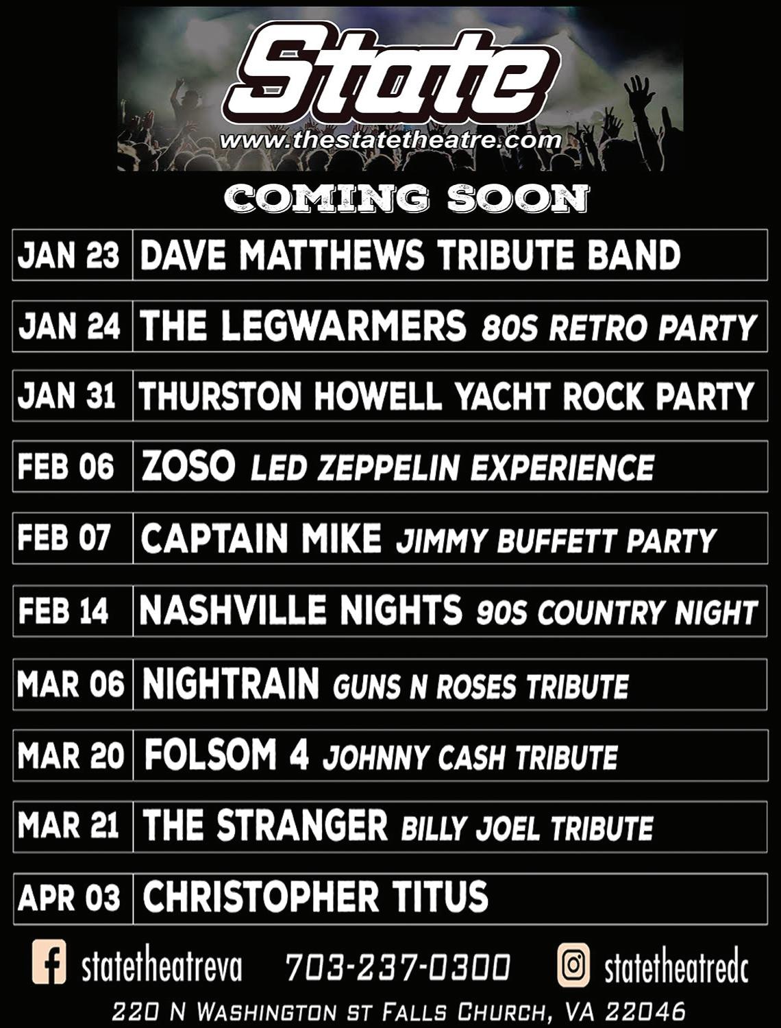 The Dave Matthews Tribute Band 8:30 p.m. The State Theatre Live music.