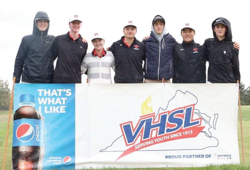 MERIDIAN JUNIOR DREW FISHEL (far right) shot a 74 to tie for fourth place at the Class 3 State Golf Championship, earning All-State honors and helping the Mustangs finish third in Virginia.(Photo: FCCPS Photos/Tim Sample)
