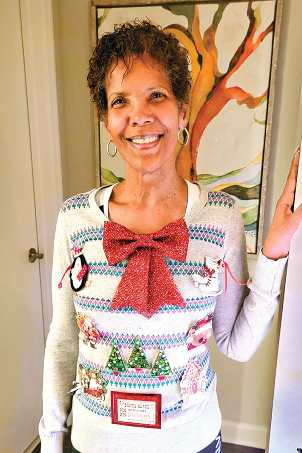 Dulin_2022_Christmas_ad.indd 1 703-626-3257 merelyn@kayes.com 2022 Unique Christmas Sweater Winner Is..... Congratulations Shelonda! Her husband created this sweater using gift tags and a gift bow. This sweater is de nitely unique because it can't be found on any shelf, on any rack or in any store. Thank you to everyone who participated this year! Happy Holidays!