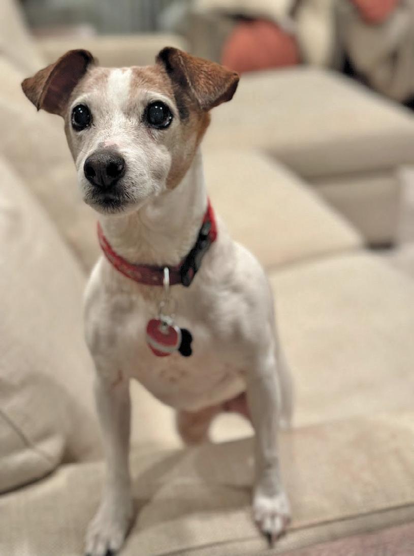 RILEY DOG loves standing watch for squirrels, treats, and snuggling. During her walks around Falls Church she will only make left or right turns, never wanting to turn around.