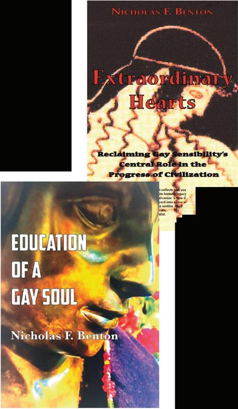 Books NicholasbyF. Benton Extraordinary Hearts is "a vital, nioral book about who we are and who we should be. I adniire it and its author enorniously." -Larry Kran1er of published outspoke• ialogue on haplng orld of cqu.11ity.' Readers and highly intellectual, pionecrin9 -Kirh Rtvittu In the grand scheme o f things, we are here for a very i m port ant reason. Our same-sex erotic attraction is a creative binding force of nature a s strong and purposeful a s any in all creation, rooted in the empathetic buffering glue that preserves, protects and advances civilizing influences, effectively steering evolutio n in the right direction. -from Education of a Gay Soul AVAILABLE ON amazon BY AUTHOR'S NAME OR TITLE '.;'J
