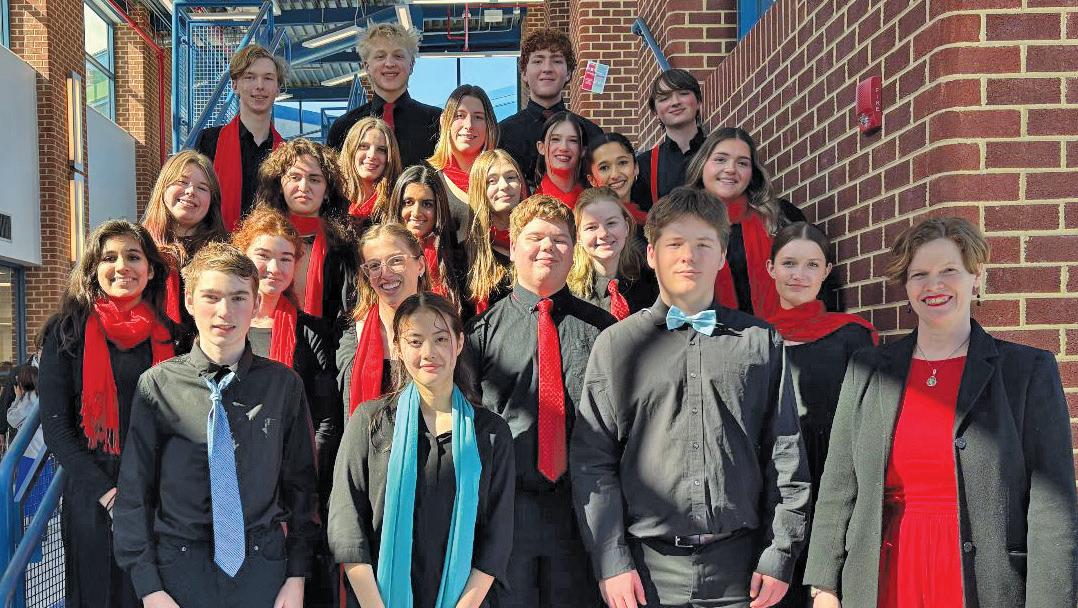 MERIDIAN HIGH AND HENDERSON Middle School students were chosen for the District X Choir and on Feb. 12-14 participated at West Potomac High School for rehearsals and a culminating concert. Over 700 students auditioned last November and 325 were selected. Chosen from Henderson were Elise Davis, Eli Gahnberg, and Sutton Snyder, and from Meridian were Will Albaugh, Margaret Ashbrook, Aila Balsano, Hannah Boesen, Caroline Flajser, Anisa Frey, Gavin Jones, Aarya Kamboh, Maeve Korves, Andrew Lindsay, Aubrey Marrow, Asha Nath, Eliana Pizzirusso, Charlotte Platt, Kris Pokryfka, Delaney Quinn, Meera Sharma, Megan Tombul, JP Tysse, and Marshall Vogel Rogers. (Photo: FCCPS)