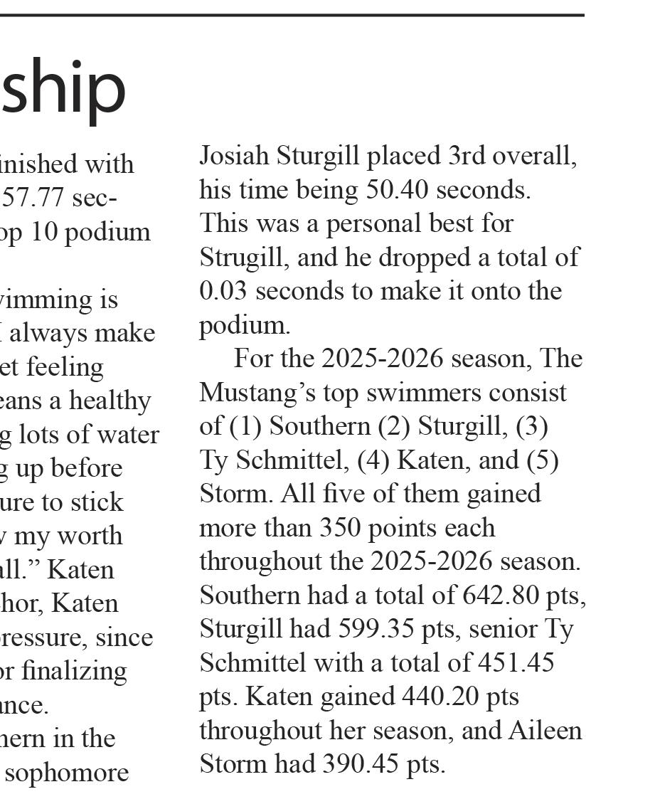 Will Davis, the lone exception, was joined by returning rotational pieces Marques Myles and Mason Pye, while for everybody else, it was plug-andplay. After 22 games, that next-manup mentality had taken the Mustangs back to the State playoffs.