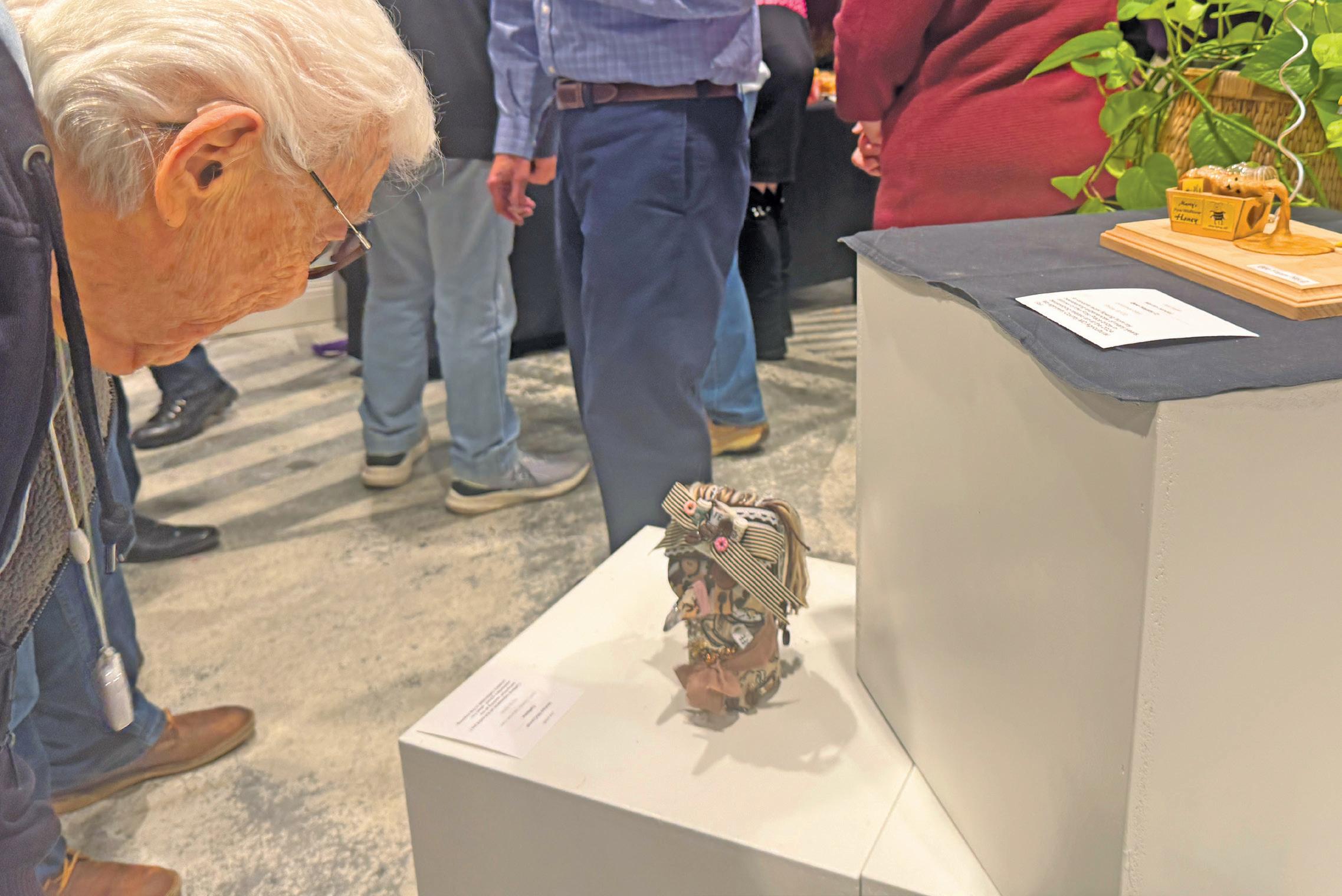 Thrives In Sunshine’ AT LAST WEEKEND’S Opening Night reception hosted by Falls Church Arts at its 700 W. Broad Gallery featured works that “bring joy.” That’s what two smaller items placed in the center of the space did for the packed house which attended. The exhibition continues through the month. (Photo: FCNP)