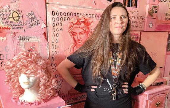 television series Twin Peaks. Despite watching Twin Peaks on blackand-white television in her native Ukraine, she always had the image pink in mind. We asked Charles Edward Andrew Lincoln IV about this, for he is a writer publishing an essay about the esoteric philosophy behind the TV series. Mr. Lincoln had this to say: “The choice of one unique color becomes what Lynch would call a ‘world-within-a-world,’ a space where heightened emotion quietly leaks through everyday objects. An all-pink room or studio is almost a new world into which you escape. That’s exactly how Lynch uses color in Twin Peaks, not as decoration, but as a portal into a different emotional register.”