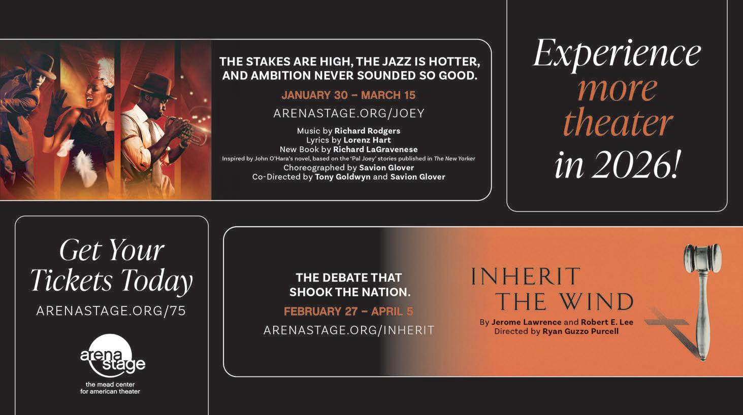 After it opened on Broadway in 1964, “Fiddler” won nine Tony Awards and was the longest running Broadway musical for almost ten years (until “Grease” beat it.) The story and New York staging by Harold Prince and Jerome Robbins are based on Sholem Aleichem’s stories. Tickets start at $47. Now through Jan. 26, 2026. Signature Theatre, 4200 Campbell Ave, Arlington, VA 22206. (703) 820-9771. Plenty of free, lighted garage parking.
