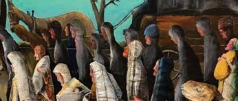 The piece is part of the artist’s “Migrant Series” of three movements Andrews cites of mass displacement in the U.S., the Great Depression, the Gulf Coast after Hurricane Katrina and the Trail of Tears.