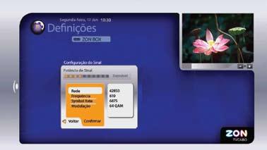 Poderá ver programas que são transmitidos em Alta Definição, mas não os verá com qualidade de imagem de Alta Definição. Estes serão ajustados à resolução da televisão (definição SD). O mesmo acontece com os menus da ZON BOX