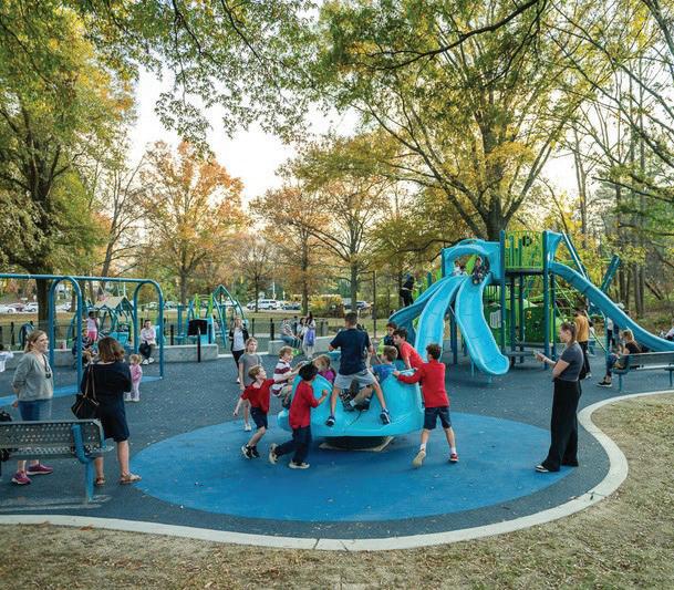 Just north in McLean, longtime favorite McLean Central Park has received a significant upgrade. The new playground was designed for all ages and abilities, and is supported by ADA-accessible parking. The park also includes a spacious pavilion with amphitheater-style seating, ideal for performances or community events. Visitors can enjoy a refreshed fitness area, renovated restrooms, and both new and resurfaced trails that connect the park’s many features. Stormwater infrastructure and landscaping improvements enhance the park’s beauty and resilience, while resurfaced basketball and tennis/pickleball courts, completed in 2023, extend the park’s appeal to active users.