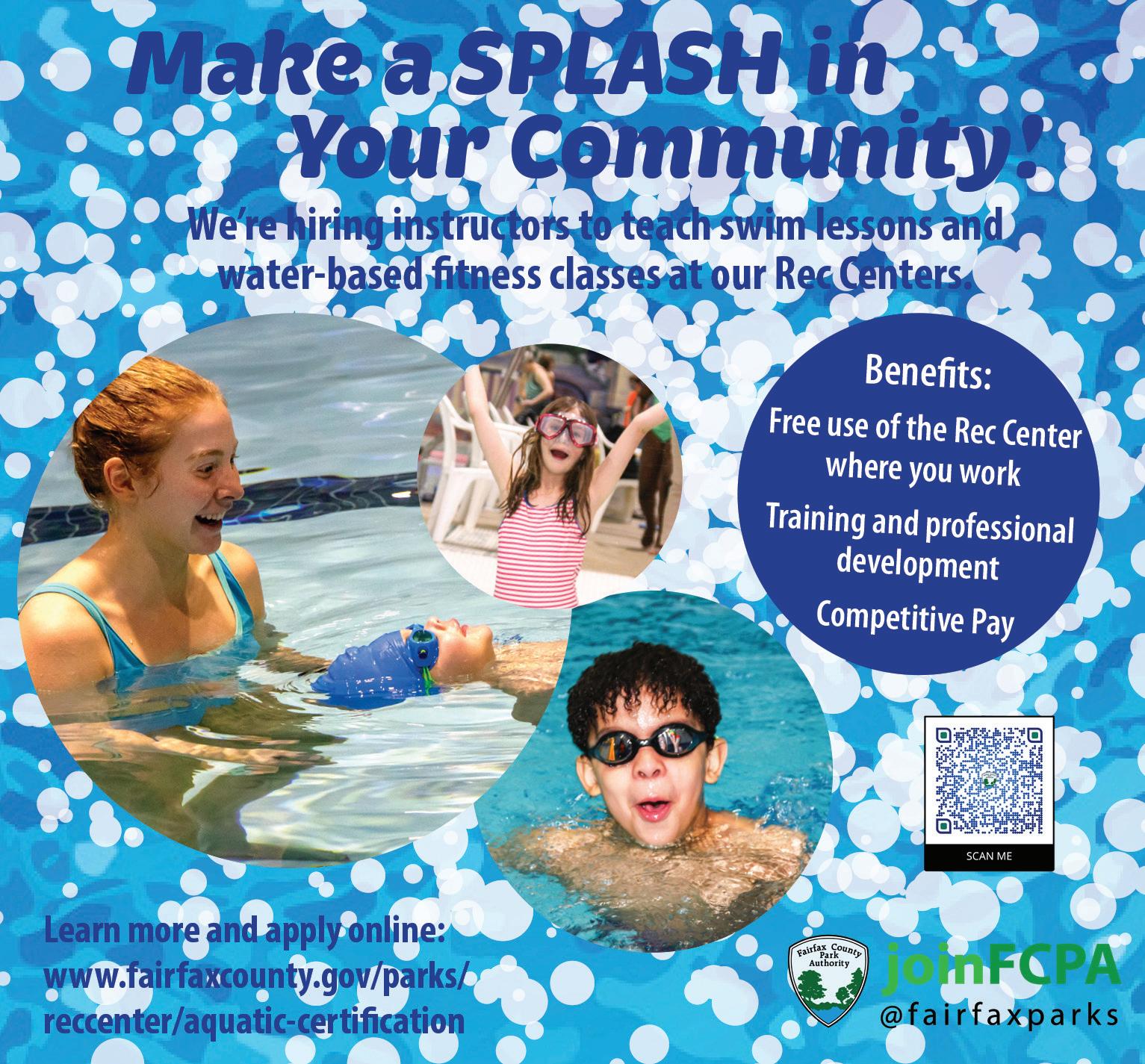 To find out more about Aquatics classes please turn to the Aquatics section or contact your closest Rec Center. For Adapted Aquatics classes, please turn to the Adapted Recreation section or call 703-324-8565.
