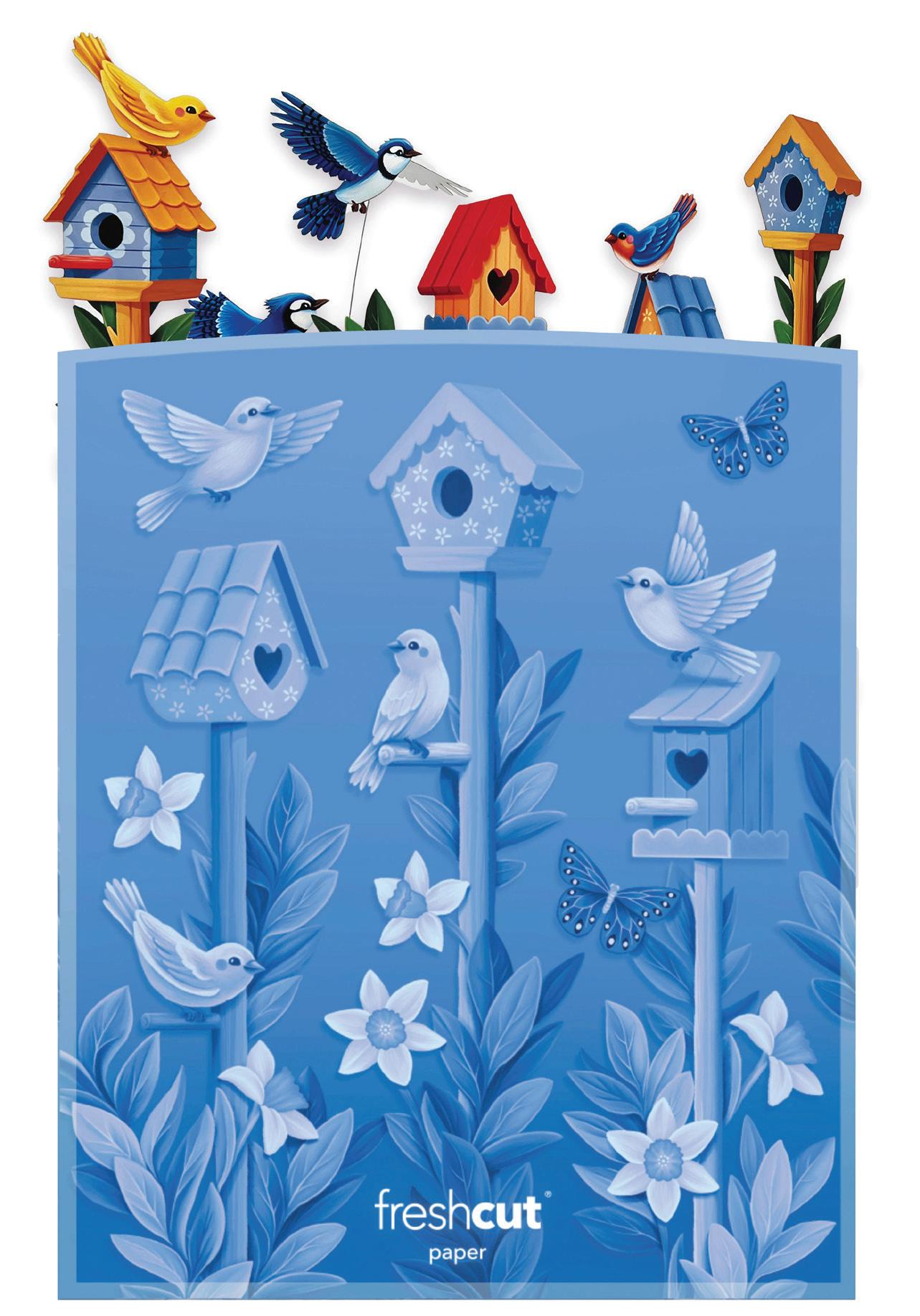 Welcome spring with our Birdhouse Garden, a vibrant accordion-style scene where songbirds take flight among beautiful, blooming flowers. A joyful celebration of nature, it’s a keepsake that brings the garden indoors.