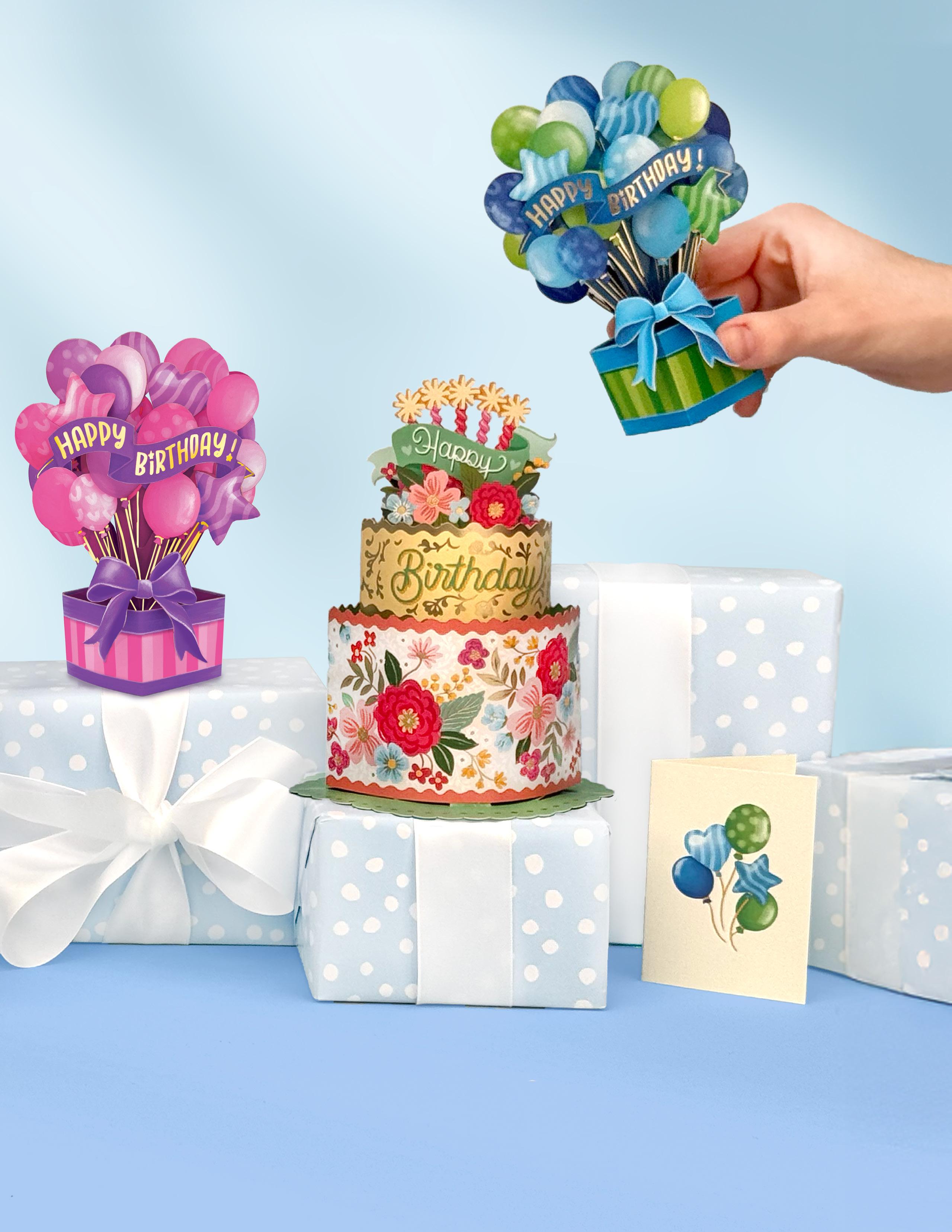 These vibrant two-tiered creations are bursting with festive charm, making them the perfect way to send your best birthday wishes. Pop them open and watch as these whimsical displays dazzle from every angle.