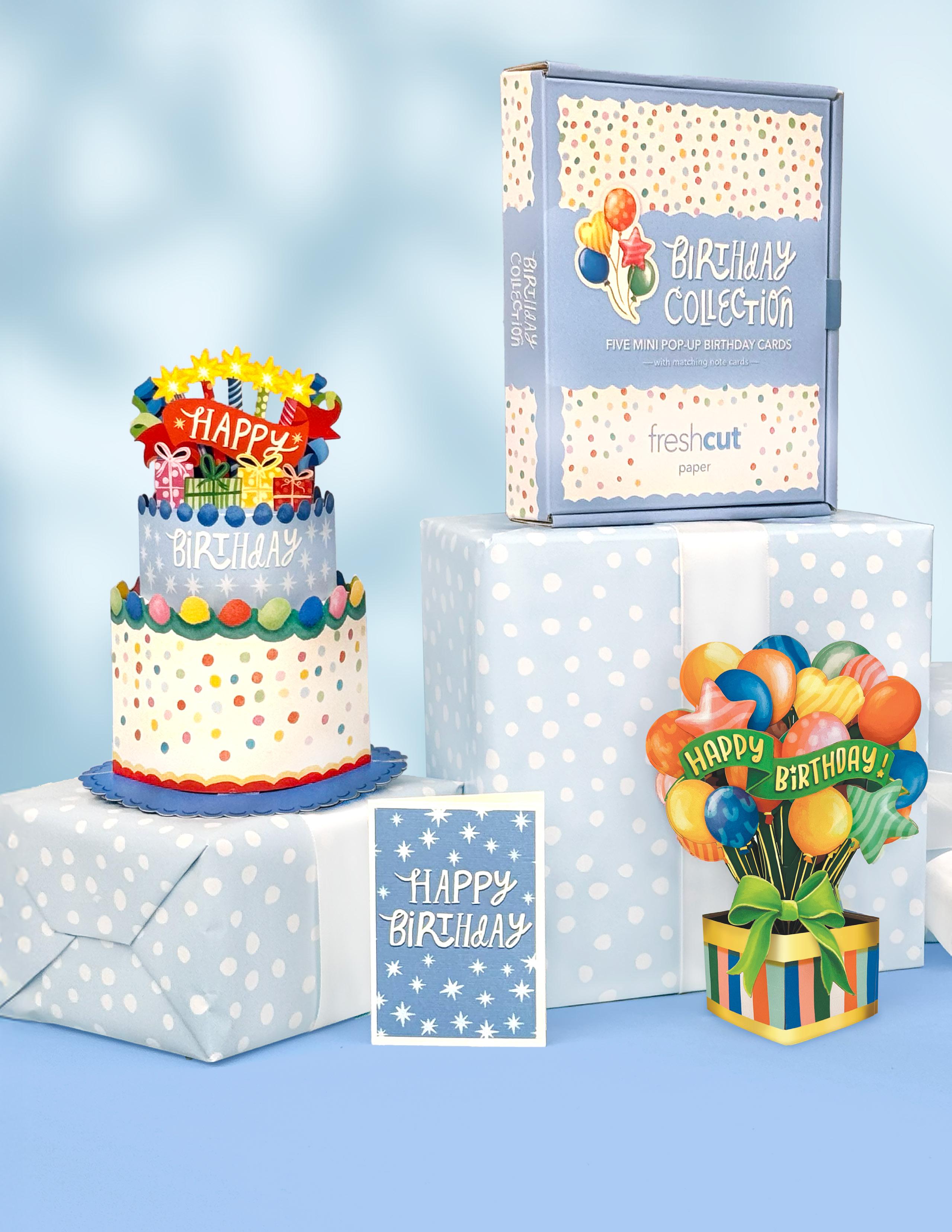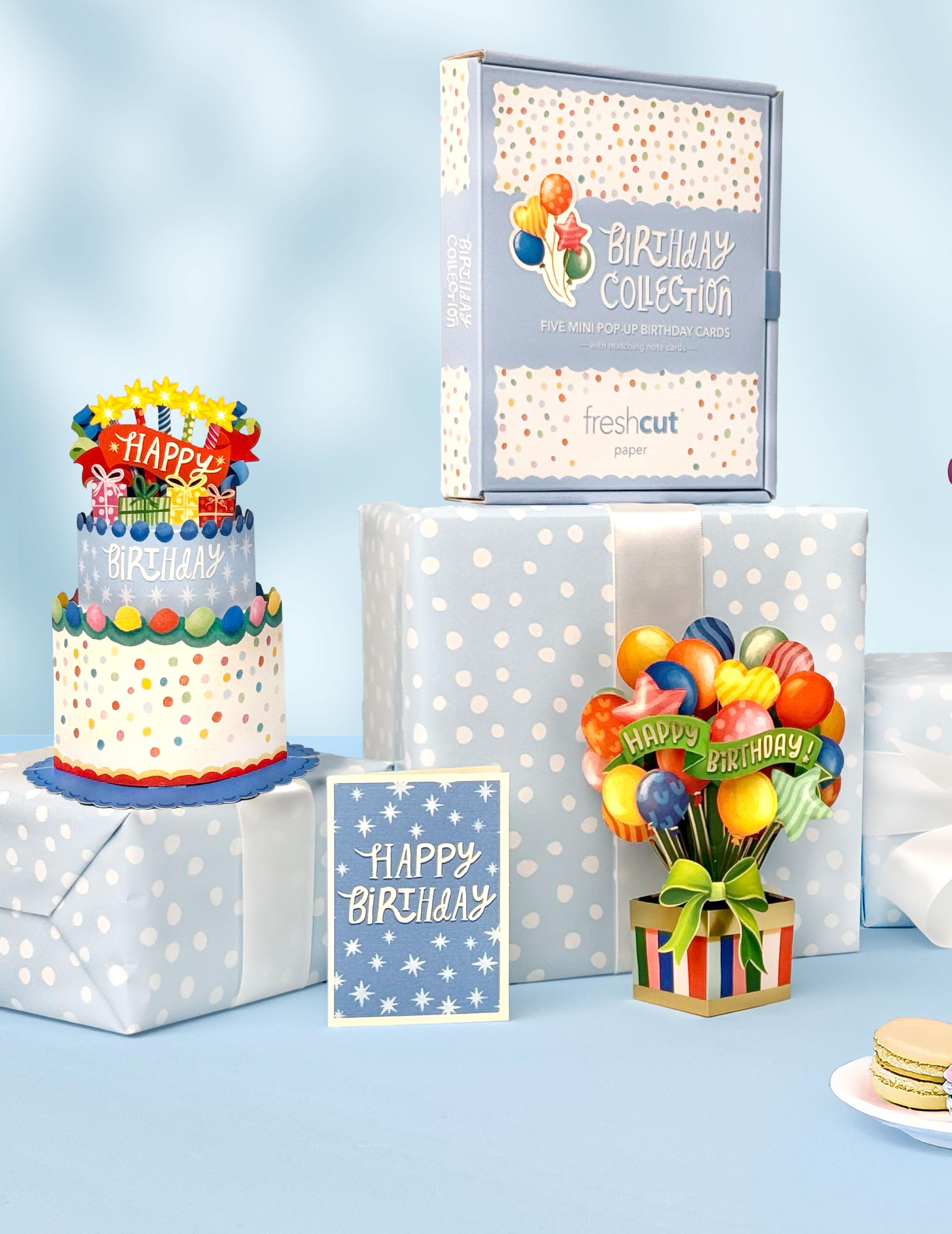 Mini Confetti Birthday Cake | Mini Blooming Birthday Cake Mini Birthday Balloons | Mini Blue Birthday Balloons | Mini Pink Birthday Balloons