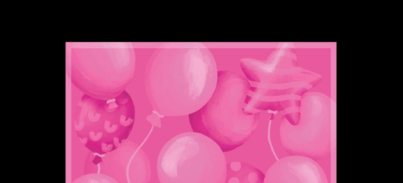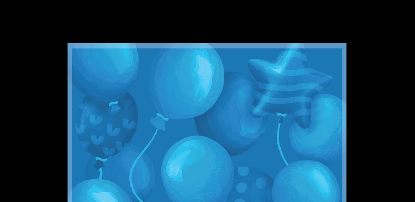 includes: party hat, balloons, birthday cake, speech bubbles (x2)
