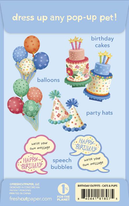 Make it a birthday to remember with vibrant balloons, cakes, and party hats! These Birthday Outfits can transfrom any Pop-Up Pet into a party animal !