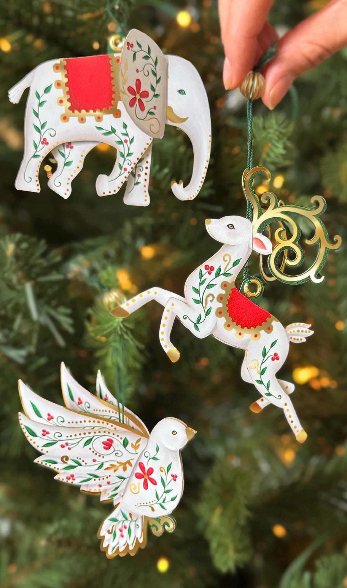 One for each day of Advent, these artful paper ornaments feature gold foiled details and elegant beads, adding a magical touch to any home.
