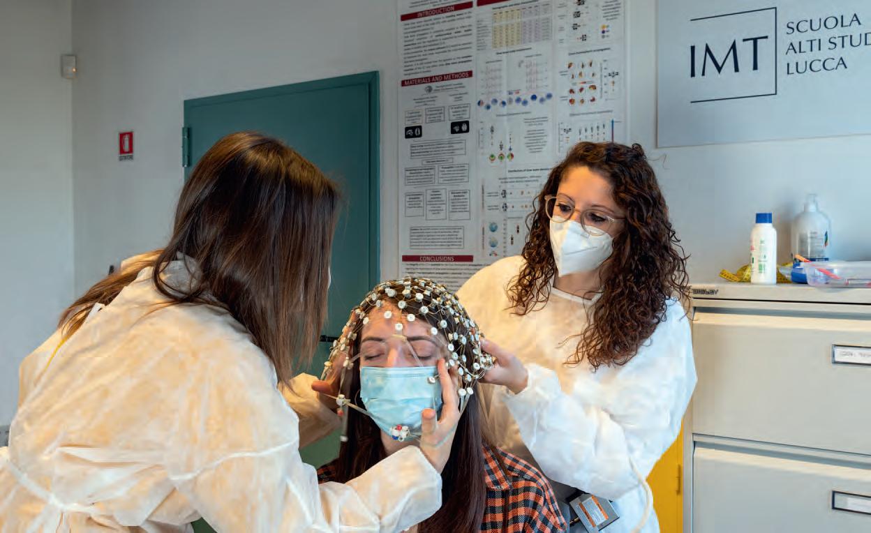 La RiCeRCa aCCademiCa aLLa poRTaTa dei più giovaNi: i pRogeTTi CoN Le SCuoLe Negli ultimi anni, un’importante azione della Scuola è stata rivolta alla promozione di progetti di ricerca e formazione in ambito sociale per i giovani delle scuole, dalle elementari fino alle superiori, anche nell’ottica di arricchire la formazione delle ragazze e dei ragazzi per entrare nel mondo del lavoro o accedere all’università. Insieme all’ufficio Scolastico Territoriale di Lucca e Massa carrara, infatti, la Scuola IMT promuove incontri di formazione anche per docenti sui diversi temi oggetto della sperimentazione di ricercatori e ricercatrici, come ad esempio i pericoli della rete, cyberbullismo, fake news, le basi neurali della dipendenza, sport e funzionamento del cervello, ma anche sul tema del patrimonio culturale e delle nuove tecnologie e sugli effetti benefici delle pratiche meditative per la gestione di ansia e stress. un’attività che non si è fermata durante la pandemia: Il cervello a fumetti e le Lezioni disegnate, sono le rassegne video ideate e realizzate insieme al corpo docente e ricercatore della Scuola, sia per ovviare alla mancanza dei tradizionali appuntamenti con le scuole del territorio, dovuta all’emergenza sanitaria da covid-19, sia per sperimentare nuovi formati da diffondere online anche in futuro.