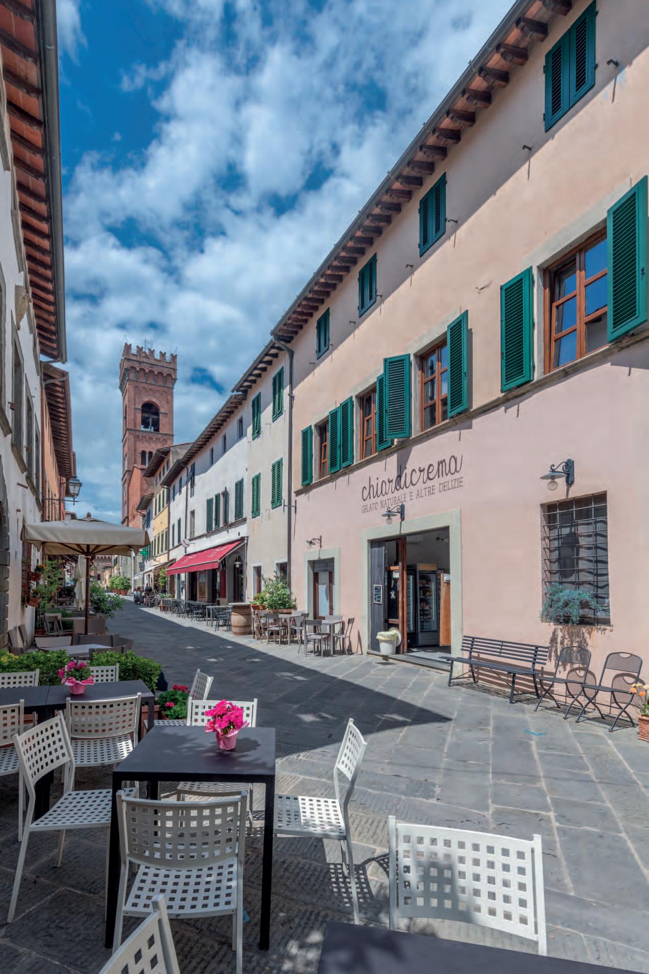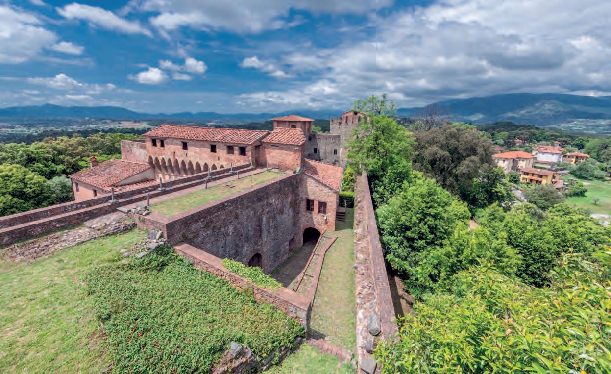 E poi, sempre seduto al tavolino del bar, tra un caffè e una chiacchiera con gli abitanti del borgo, puoi scoprire le mille storie che fanno di Montecarlo un luogo unico, un paese che sembra sospeso tra passato e presente. Montecarlo affonda le sue radici nella storia medievale. Prima della sua fondazione, esisteva il borgo di Vivinaia, un insediamento fiorente che fu però raso al suolo dai Fiorentini nel 1331, nel corso delle guerre tra Lucca e Firenze. I suoi abitanti, sfollati e senza un rifugio, trovarono protezione sulla collina del Cerruglio, dove sorgeva un’antica fortezza circondata da boschi. Fu qui che il principe Carlo di Lussemburgo, inviato a Lucca dal padre re Giovanni, li trovò e decise di ricostruire il borgo, battezzandolo «Mons Charoli» in suo onore. Quel nome, nel tempo, si è trasformato nell’attuale Montecarlo. La Rocca del Cerruglio, punto nevralgico del borgo, fu teatro di eventi epocali, tra cui la battaglia di Altopascio del 1325, di cui quest’anno si celebrano i 700 anni, in cui il condottiero Castruccio Castracani inflisse una storica sconfitta ai Fiorentini. Ancora oggi, le mura della fortezza raccontano di un passato fatto di guerre e resistenze, testimoni silenziosi della forza e della determinazione degli abitanti.
