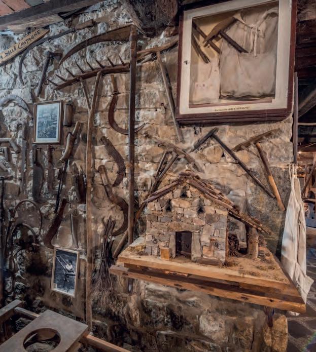 Il percorso si completa con una visita al metato (essiccatoio per le castagne), alla carbonaia e alla capanna di paglia, disseminati tra il borgo e i suoi dintorni.