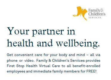 • Family and Children’s Services covers the first 3 office visits at no cost to you $0 copay.