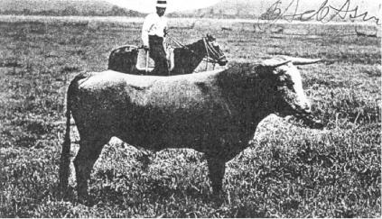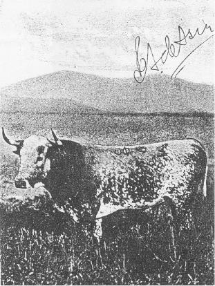 Incas”, agregando que: por el año 1550, vio arar en el Valle del Cuzco a los bueyes de propiedad de don Juan Rodríguez de Villalobos, a los que llamaban “Chaparro”, “Naranjo” y “Castillo”.