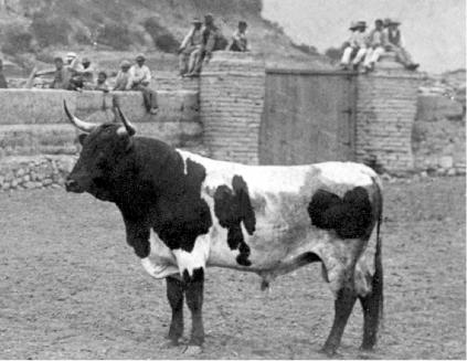 El toro de lidia es un producto netamente español, y se puede decir que los toros españoles de lidia descienden de cinco ramas importantes, la Navarra, extinguida actualmente en España, la Jijona, de pelo colorado como la anterior, la de Cabrera, la Vazqueña y la de Vista Hermosa, que es la que en sus diversas ramificaciones, hoy predomina en las ganaderías bravas. Además de estas principales hubo otras de menor importancia como las de los Gallardo del Puerto, la de Zapata, la de Raso Portillo, que es la más antigua de todas, y otras varias más.